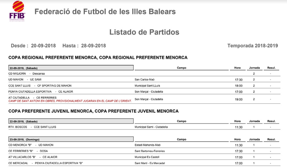 Fondo horaris futbol Menorca