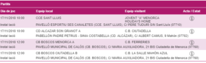 En Ses Canaletes se disputará el partido entre el CCE Sant Lluís y el CB Jovent d’Alaior. Las locales, que buscarán la segunda victoria de la competición, presentan un balance de 1 victoria y 4 derrotas. Las de Alaior siguen con opciones de luchar por la segunda plaza, 2 victorias y 2 derrotas, pero no pueden volver a fallar.