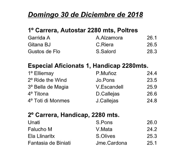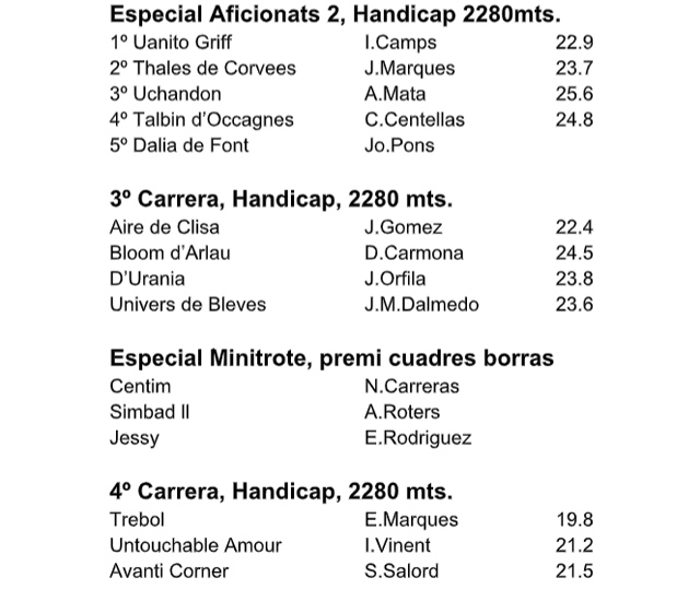 Resultados Carreras Trot – Hipódromo Municipal de Mahón 30 D