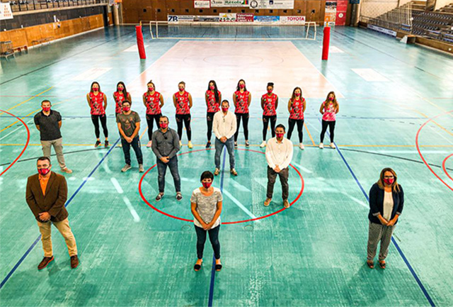 presentes el cuerpo técnico bermellón con Bep Llorens al frente, así como las jugadoras del Avarca de Menorca, principales protagonistas de la cita.