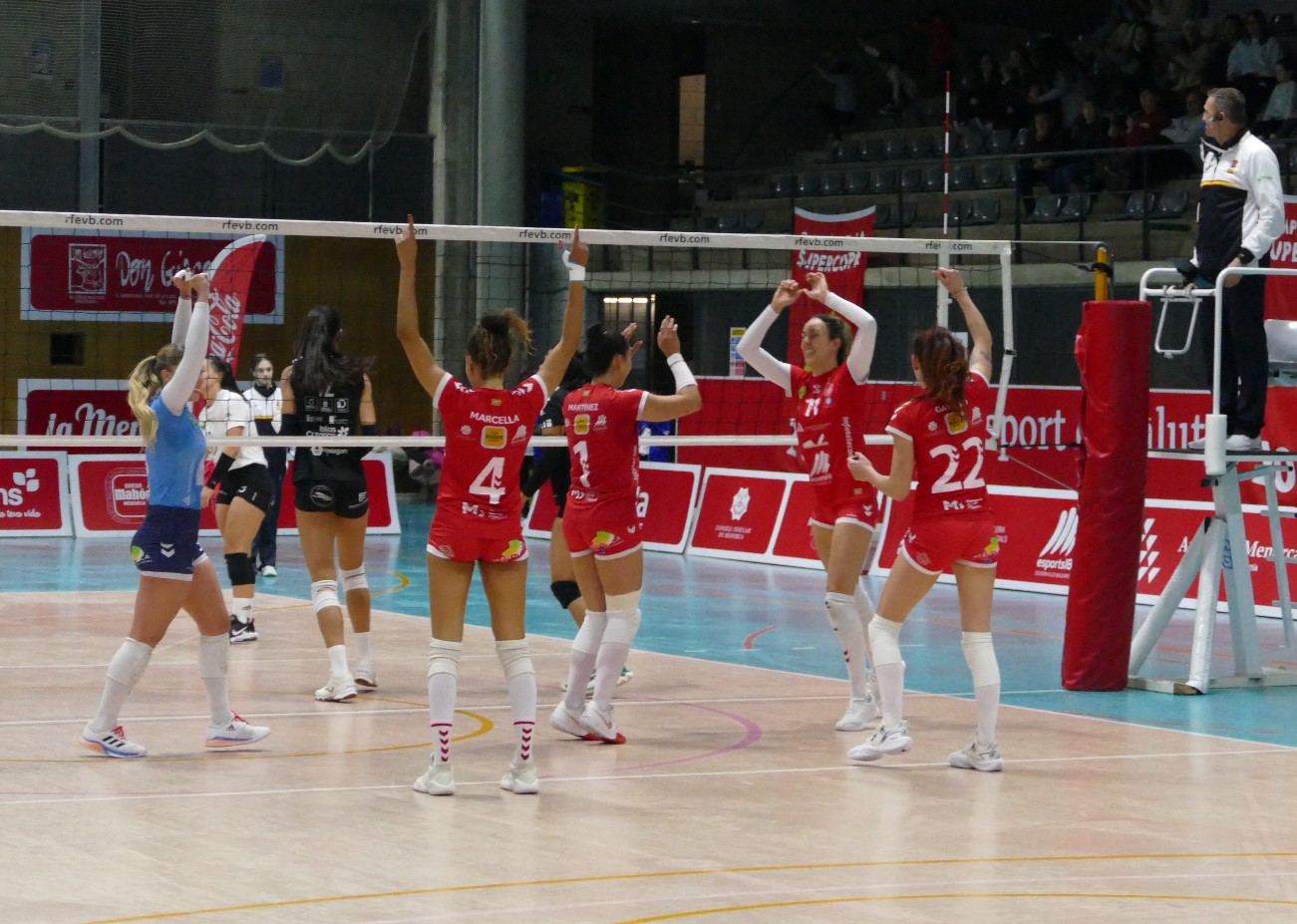 Muy bien empezaba el cuarto set para los intereses menorquines, un 7-2 que parecía poner rumbo al triunfo final. Nada más lejos de la realidad, las visitantes se sobrepusieron igualando el marcador e incluso obteniendo mínimas ventajas. Fue un final taquicárdico, 19-20, 22-22…hasta que dos puntos de Jimena Fernández y un error en el saque de la visitante Hiruela certificaron un gran triunfo menorquín que sella su clasificación directa para las semifinales.