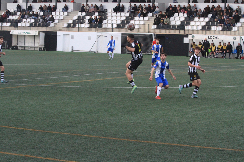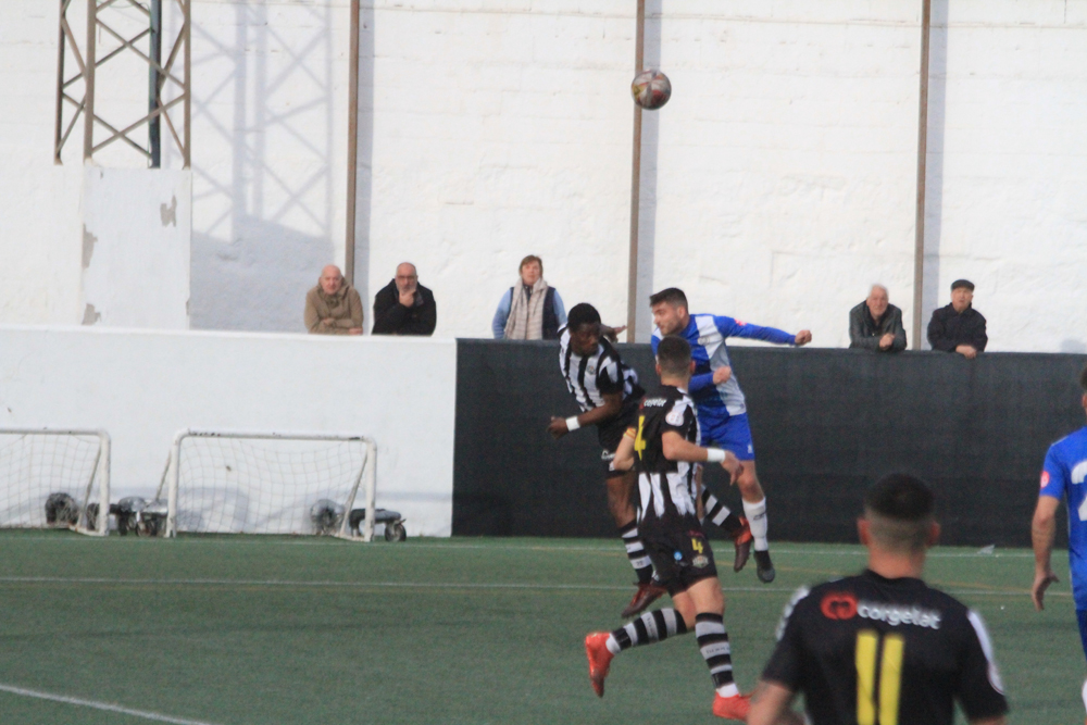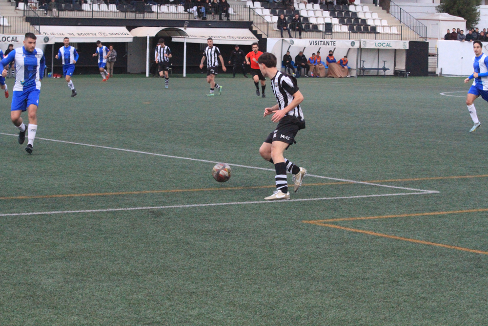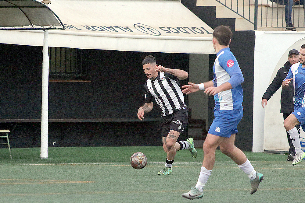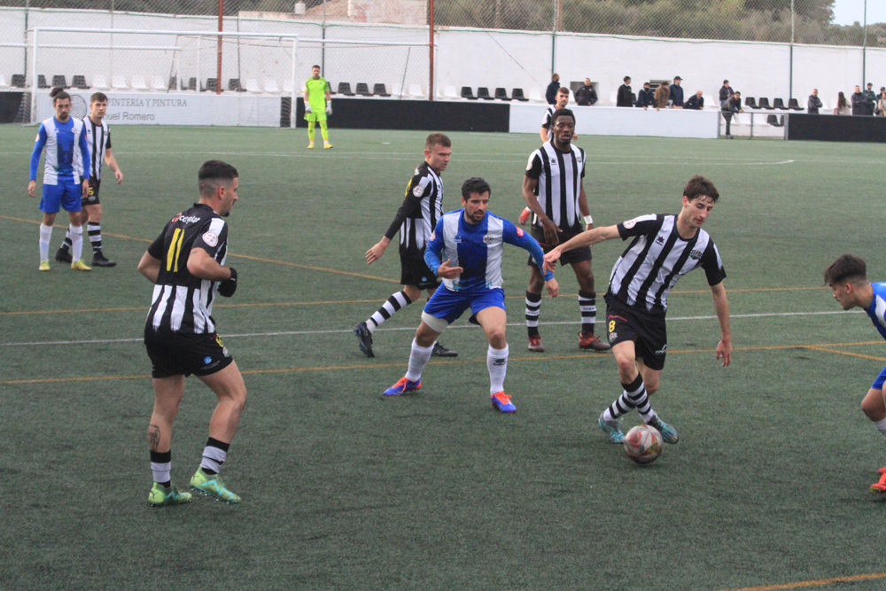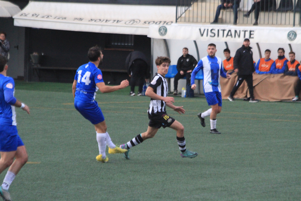 Los albinegros empezaban el partido con su clásica propuesta de sacar el balón controlado desde atrás ante un Alcudia que estaba bien asentado sobre el césped de Los Pinos y que no renunciaba al balón. Al filo de los 26 minutos llegaba el gol visitante, Javier López enviaba el balón al fondo de las mallas y ponía el 0-1.