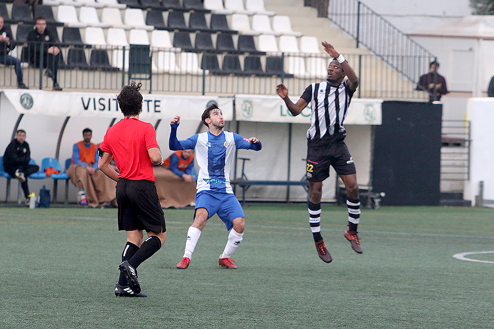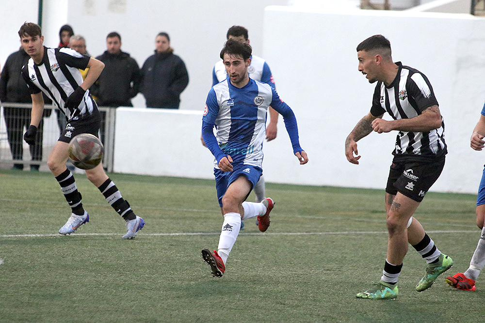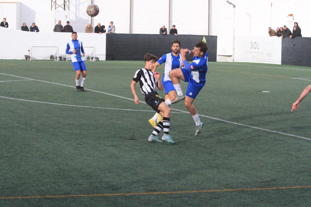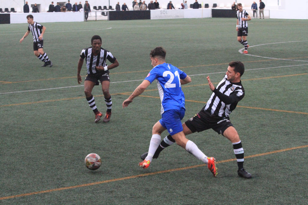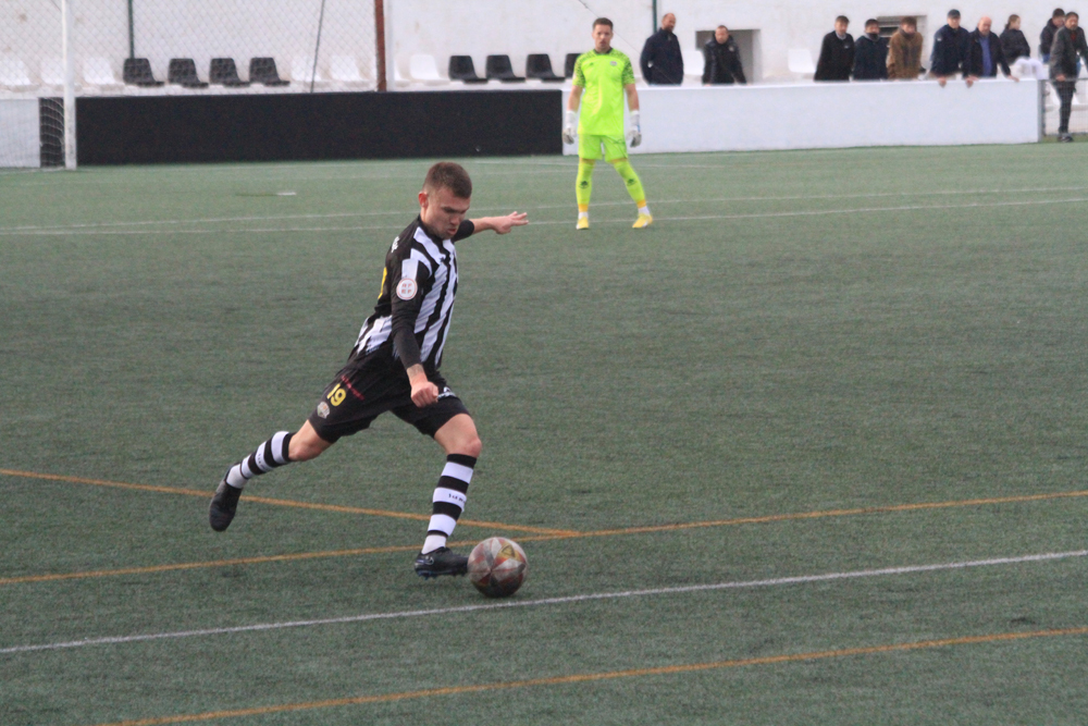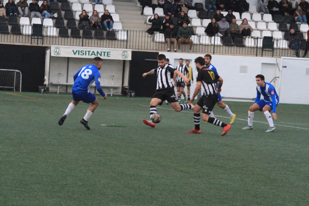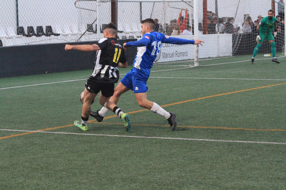 Los albinegros empezaban el partido con su clásica propuesta de sacar el balón controlado desde atrás ante un Alcudia que estaba bien asentado sobre el césped de Los Pinos y que no renunciaba al balón. Al filo de los 26 minutos llegaba el gol visitante, Javier López enviaba el balón al fondo de las mallas y ponía el 0-1.