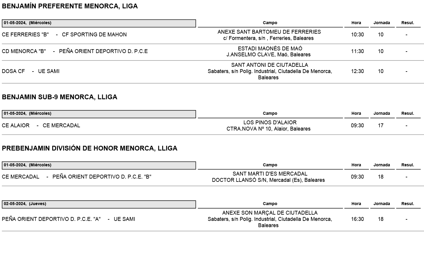 Fondo horaris futbol Menorca