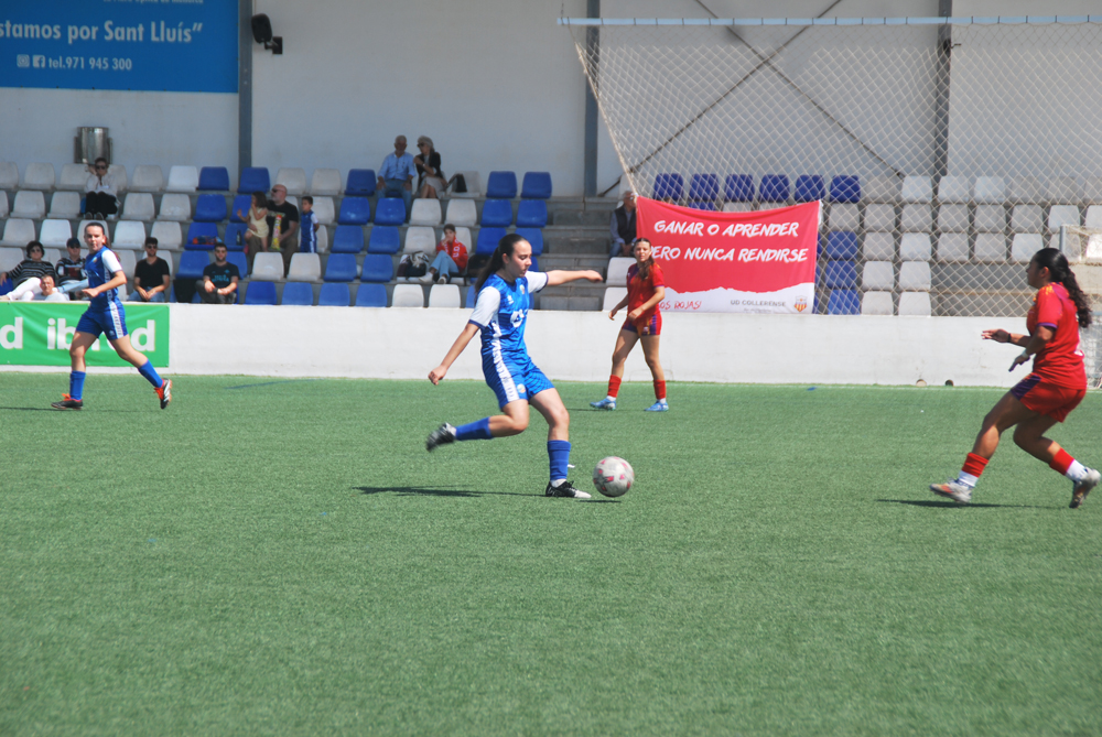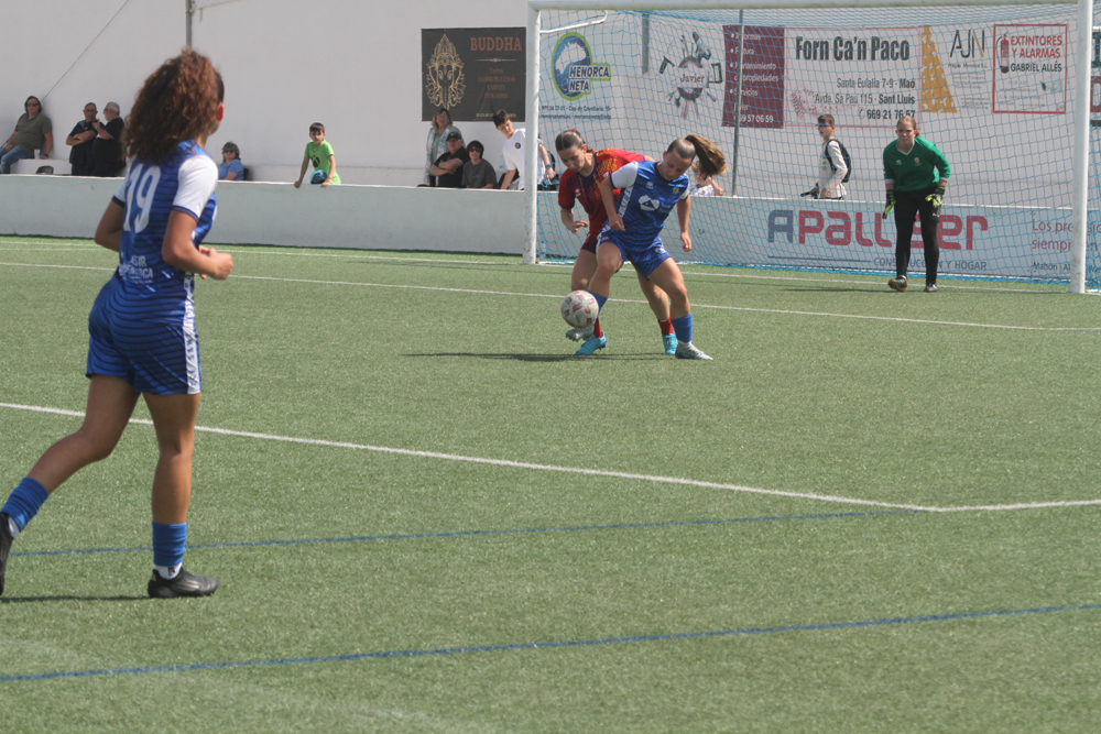 El CCE Sant Lluís ha culminado una temporada brillante al conseguir la tercera posición tras derrotar al Collerense en Ses Canaletes. El encuentro, decisivo para definir el tercer puesto, finalizó con un 2-1 a favor de las locales. A pesar de que el partido comenzó cuesta arriba con un gol tempranero de Bonimi para el equipo mallorquín en el minuto 7, las de Lluís Muñoz reaccionaron rápidamente y empataron gracias a Iría Cardona. El tanto de la victoria llegó en el minuto 56, cuando Isabel Santiago anotó el gol decisivo. Con esta victoria, el Sant Lluís cierra una temporada muy meritoria, marcada por las dificultades de las lesiones en el tramo final.