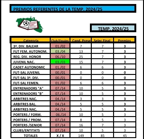 Este jueves 31 de julio de 2025, en la Sala de conferencias del Pati de Sa Lluna en el Convento Sant Diego de Alaior, tendrán lugar las votaciones finales de la 1ª edición de los Premios “REFERENTES del Fútbol Menorquín”, que sustituyen a los antiguos premios “DESTACADOS/AS” celebrados durante diez temporadas.
