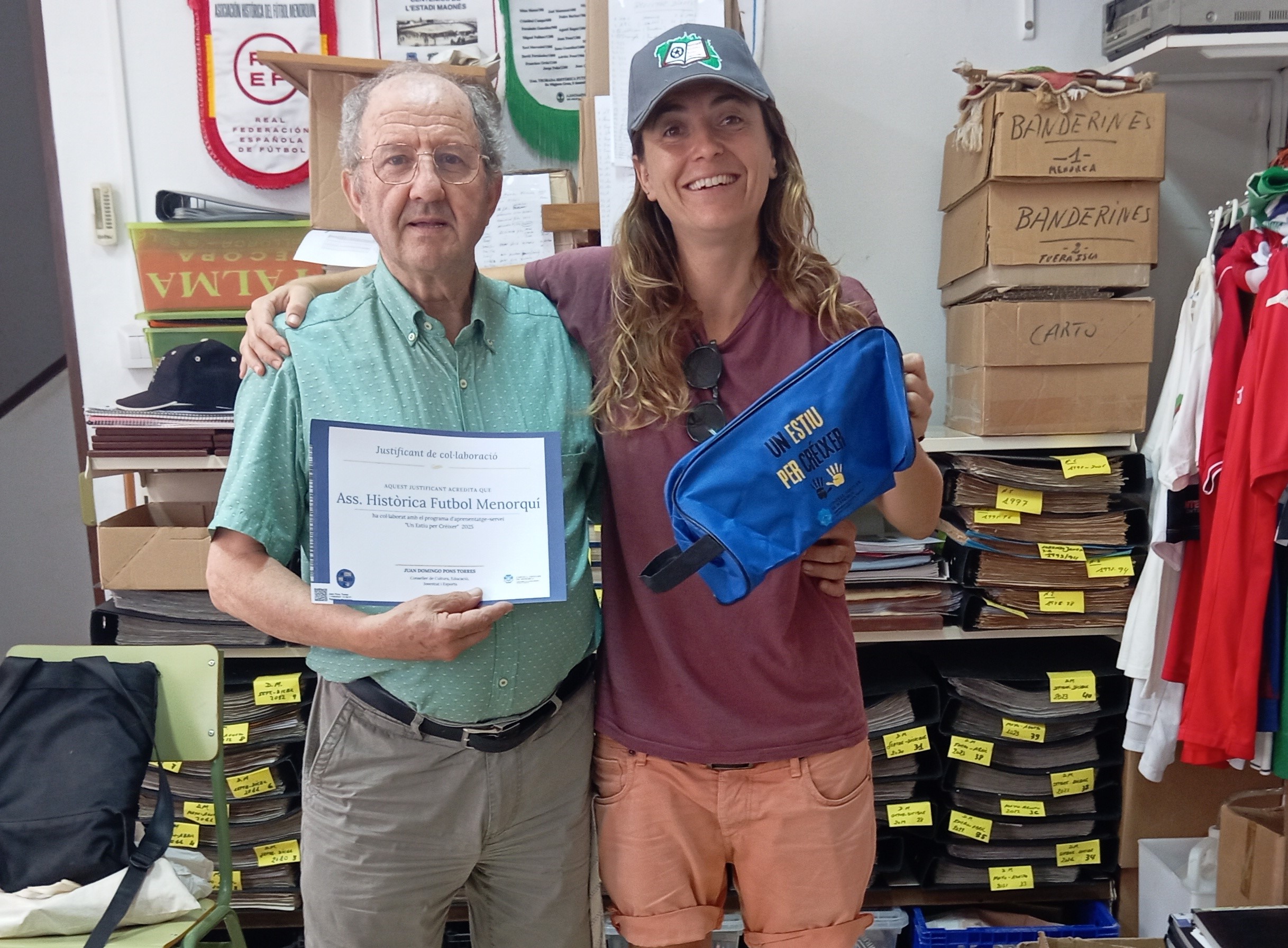 La Sra. Tania, coordinadora de la 7ª edición del programa “ESTIU per CREIXE”, ha entregado a la AHFM un diploma de agradecimiento por la colaboración en la formación de jóvenes durante este verano en Menorca.