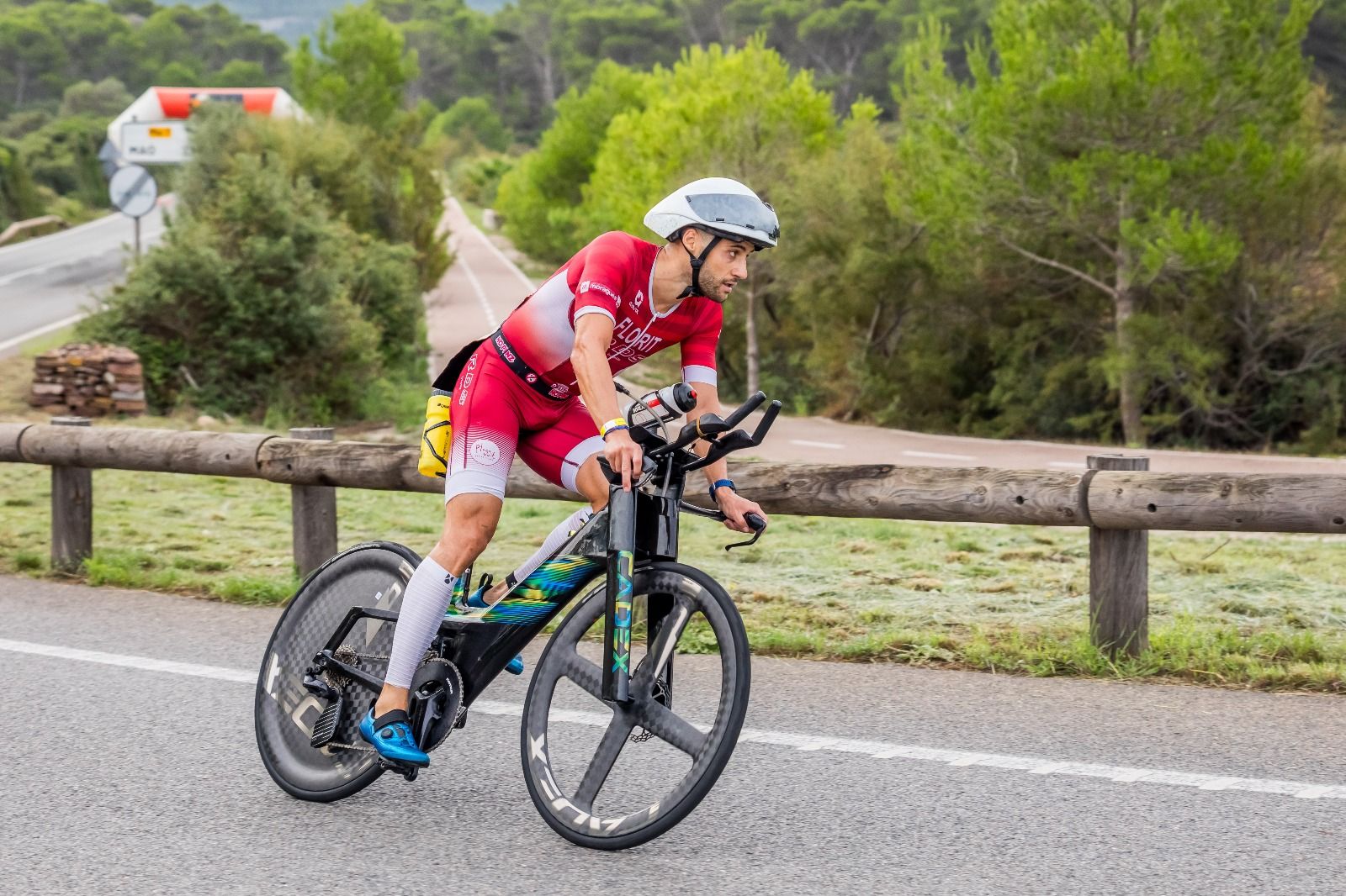 A las 8 de la mañana dio inicio la distancia reina con sus 1,9 kilómetros de natación, los 90 km de bicicleta y 21 kilómetros de carrera a pie, con un mar plano, calmado y que resultó un auténtico espectáculo. Una cita en la que Jaime Florit le volvió a tener tomada la medida imponiéndose con un crono de 4:07:35 tras salir segundo del agua y en el parcial de bicicleta colocarse al frente, posición que no volvería a soltar. El italiano Francesco Cauz fue segundo con 4:15:56 mientras que el podio masculino lo completó Adrián Lainez con 4:18:44.