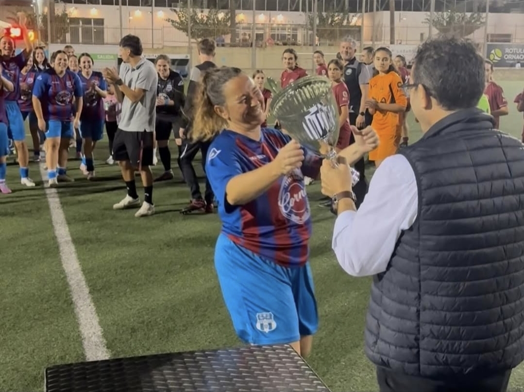 Tras el pitido final, se celebró la ceremonia de entrega de trofeos, en la que participaron Vicente Martínez, delegado de la FFIB en Menorca, y Mariola Luque, responsable del fútbol femenino en la isla.