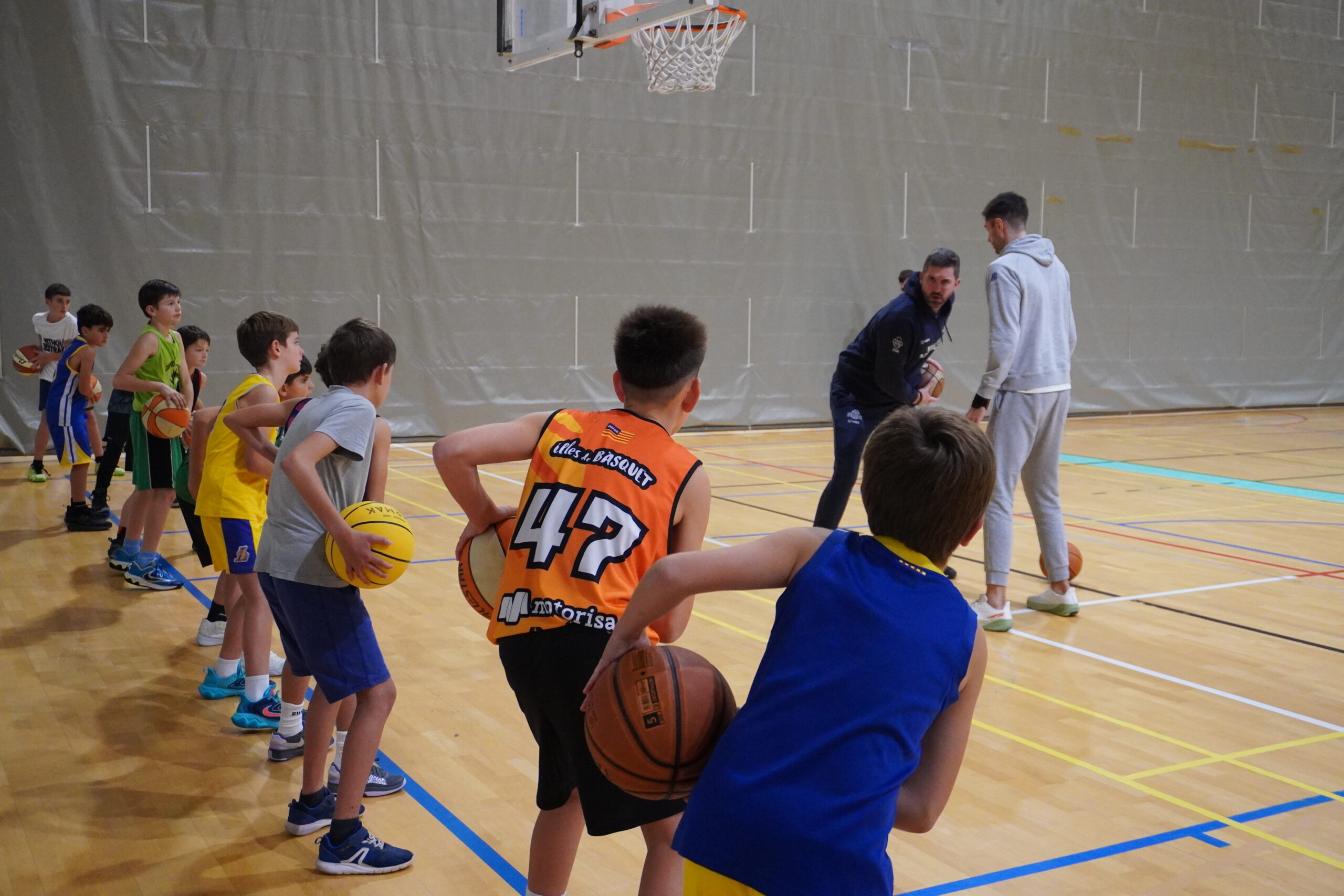 Cerca de medio centenar de niños y niñas de las categorías premini y mini del Club Bàsquet Ciutadella Ponent vivieron el pasado martes 25 de noviembre una tarde inolvidable gracias a un entrenamiento muy especial dirigido por miembros del Hestia Menorca.