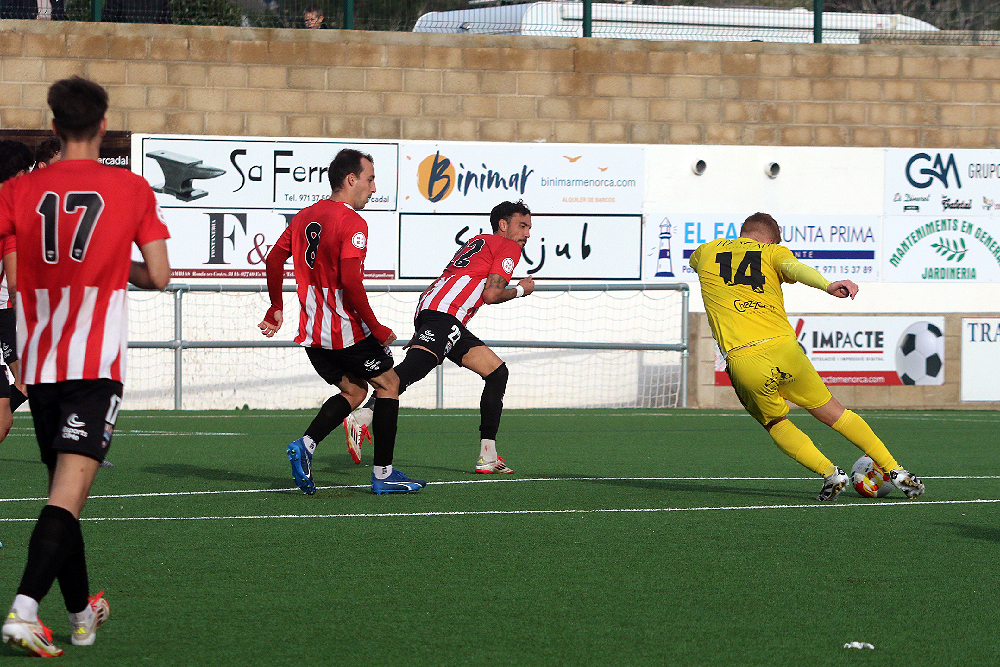 El encuentro se puso cuesta arriba muy pronto para los menorquines. Alberto Górriz, en el minuto 13, superó a José Luís Álvarez para establecer el 0-1, un tanto que acabaría siendo decisivo. Lejos de venirse abajo, el Mercadal reaccionó y se lanzó en busca del empate, pero el balón se negó a entrar ante un rival bien replegado y con el paso de los minutos jugando a favor.