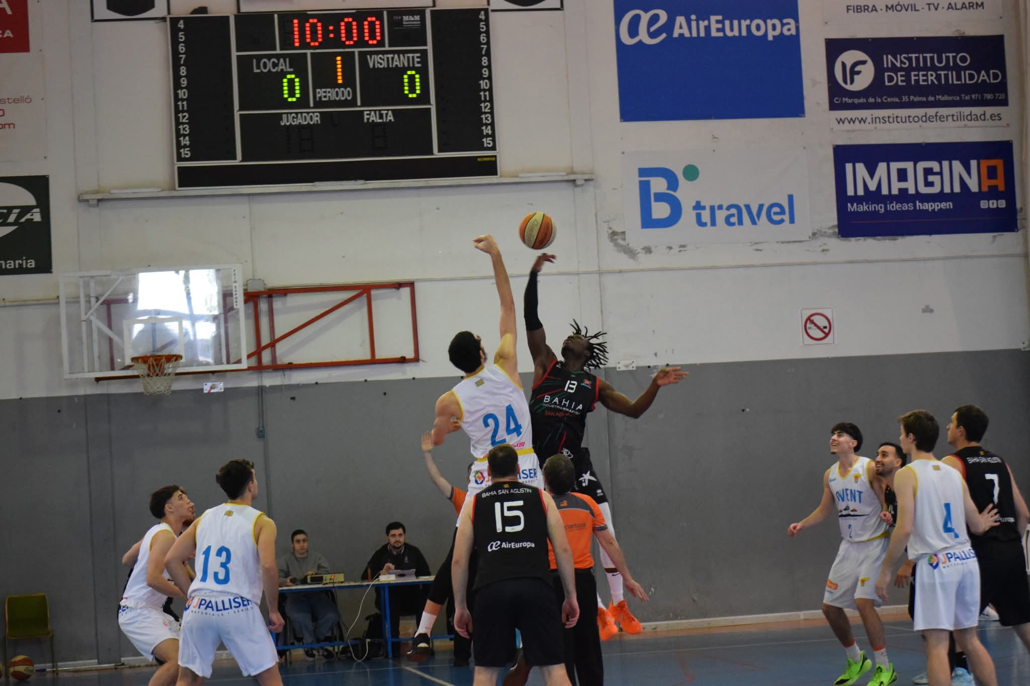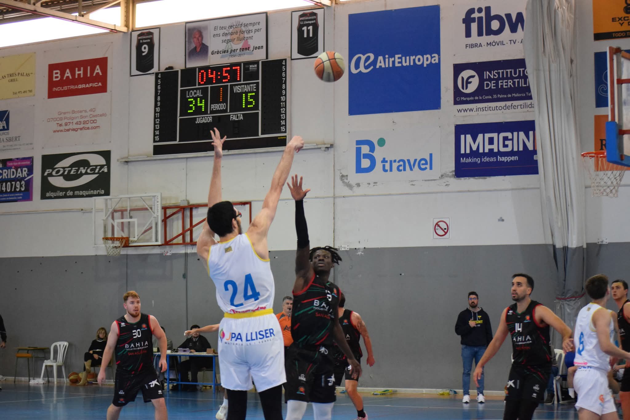 Los locales empezaron con gran nivel y lograron darle la vuelta al 2-8 inicial, cerrando el primer cuarto por delante (24-21). Los menorquines comenzaron a tomar el control poco antes del descanso, aunque la ventaja seguía siendo corta (36-42).