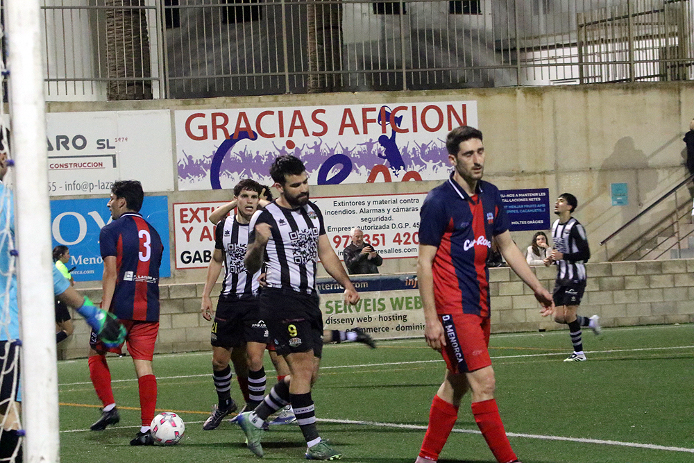 Los locales se adelantaron con el tanto de Hugo Bagur en el minuto 33 y parecían tener el partido bajo control. Sin embargo, el encuentro se complicó con la expulsión de Raúl Marqués en el 51. El Ferreries resistía con uno menos, pero cuando la victoria parecía asegurada apareció Xavier Bosch en el 91 para firmar el 1-1, un empate que aleja un poco más a los locales del liderato.