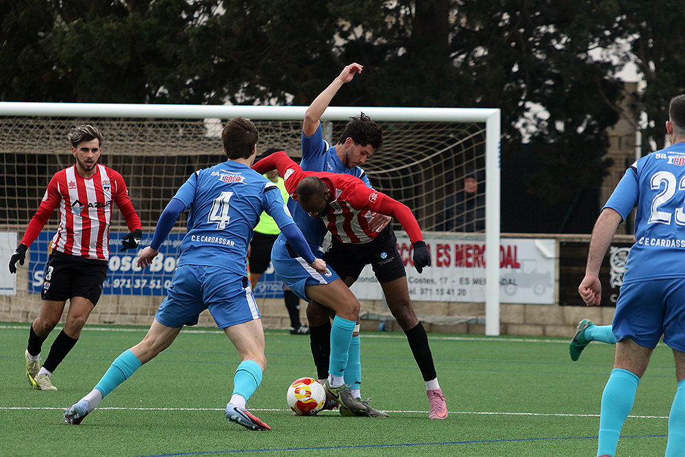 Tras el paso por vestuarios, el Mercadal salió decidido y encontró el gol cuando Sergio cazó un rechace para enviarlo a la escuadra (1-0, min. 50), convirtiéndose en el máximo goleador del equipo. Sin embargo, el Cardassar reaccionó y logró el empate por medio de Ait Said (1-1, min. 68), incluso rozando el segundo poco después.