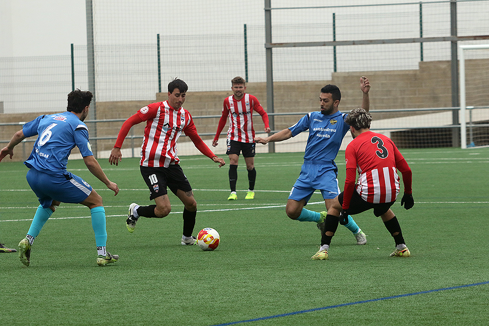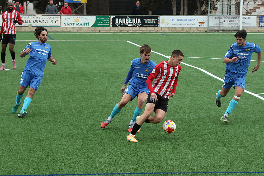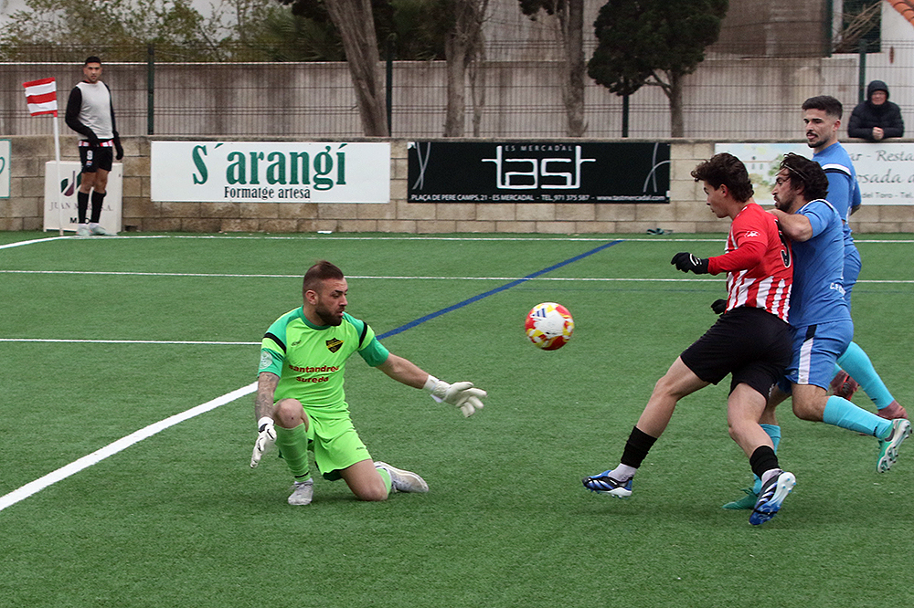 En el tramo final, el Mercadal apostó por un juego más directo y, pese a no controlar el partido, encontró premio en un saque de esquina donde Adrián, tras varios rechaces, firmó el 2-1 definitivo (min. 83).