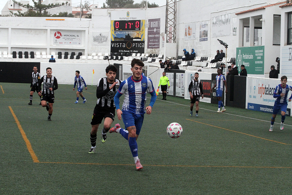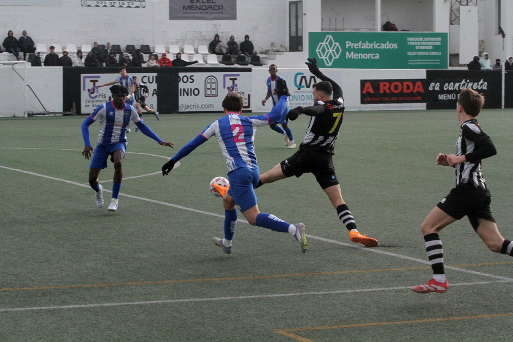 El derbi de Ciutadella cayó del lado de la Penya Ciutadella Esportiva, que se impuso por 2-1. Un doblete de Sergi Marqués —el primero de penalti en el 14 y el segundo en el 35— marcó la diferencia. Mass Diop recortó distancias en el 44, pero no fue suficiente para evitar la derrota.