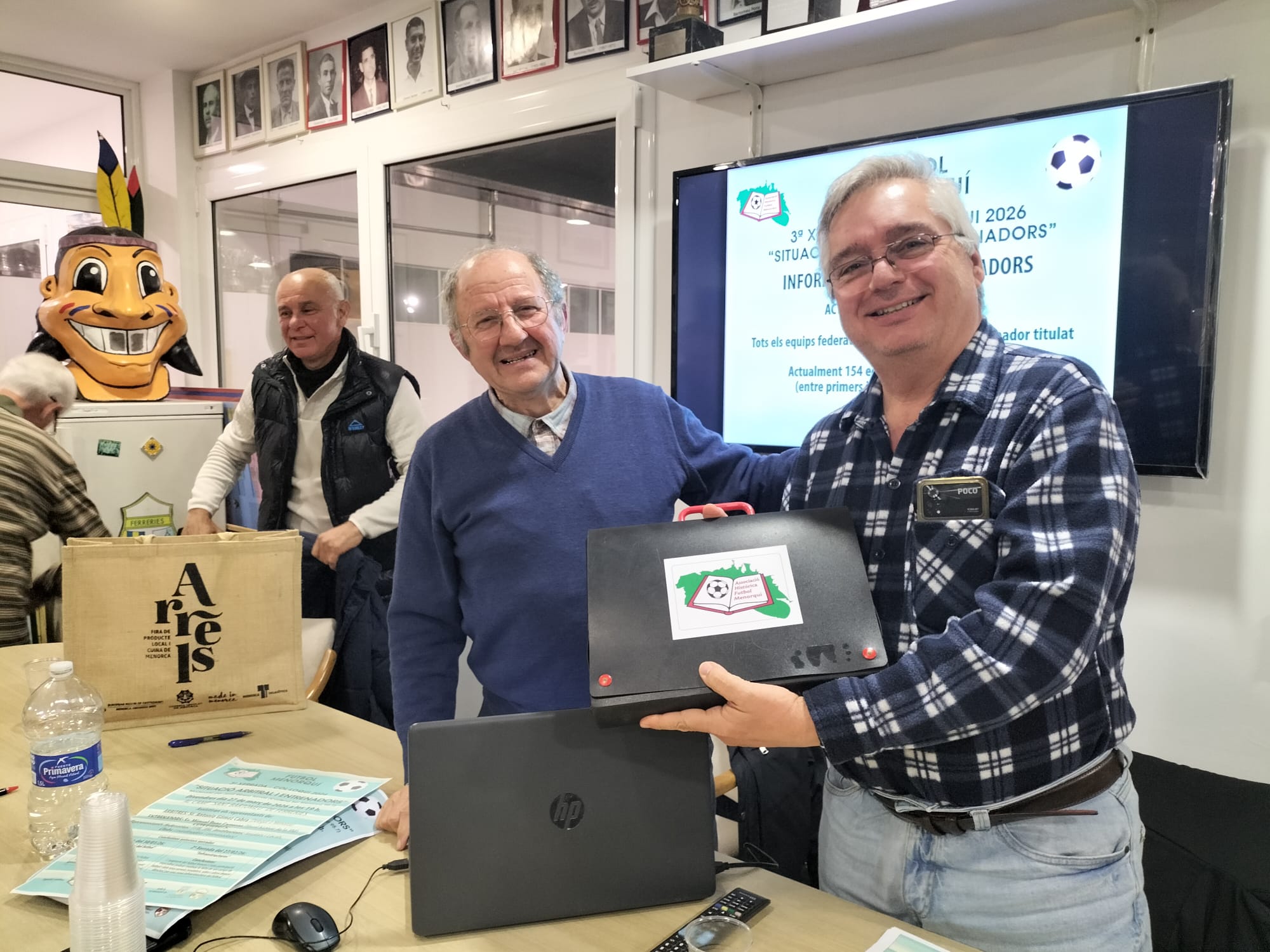 La sala de juntas del CE Ferreries, en el campo de Sant Bartomeu, acogió la 3ª Xerrada del Fútbol Menorquín, centrada en esta ocasión en la situación de árbitros y entrenadores. El acto, moderado por el periodista Jordi Ribera Tomàs (Cadena SER Menorca), reunió a 24 asistentes, entre representantes de clubes como el CE Ferreries, CE Alaior, CD Menorca, Sporting y Norteño, además de miembros de la AHFM y personas vinculadas al fútbol local.