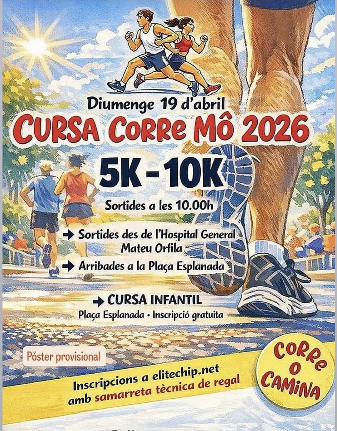 La ciudad de Maó será escenario el próximo domingo 19 de abril de una nueva edición de la Cursa Corre Mô 2026, una cita deportiva abierta a todos los públicos que combinará competición y participación popular.