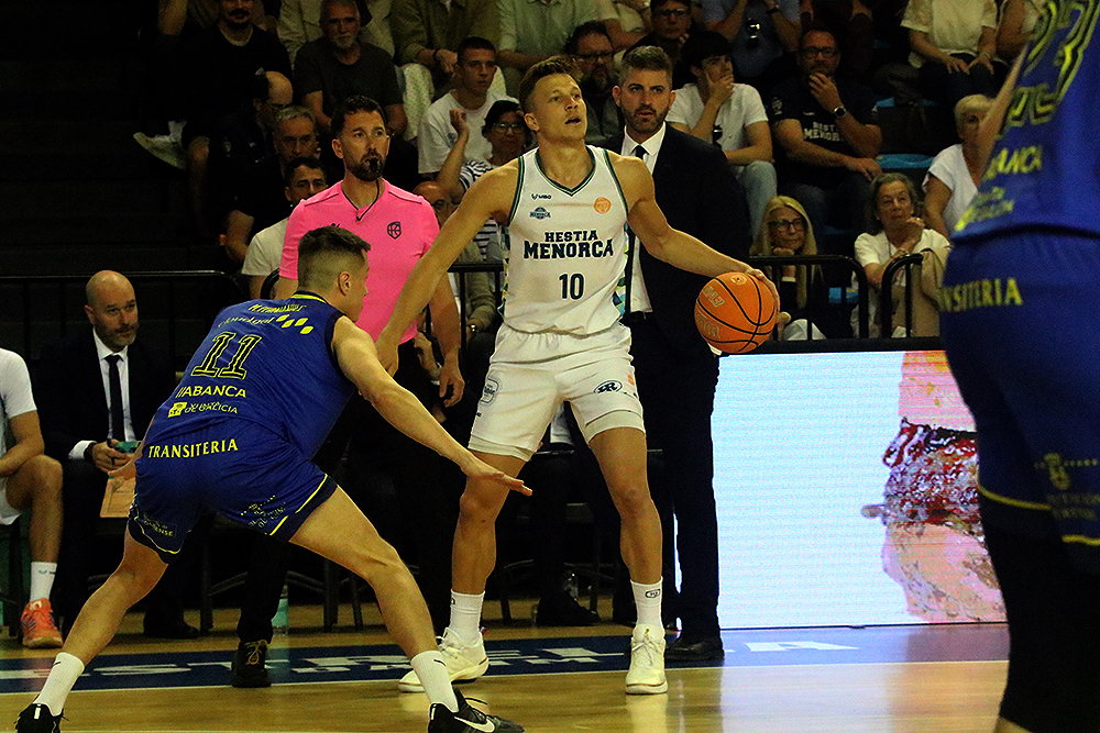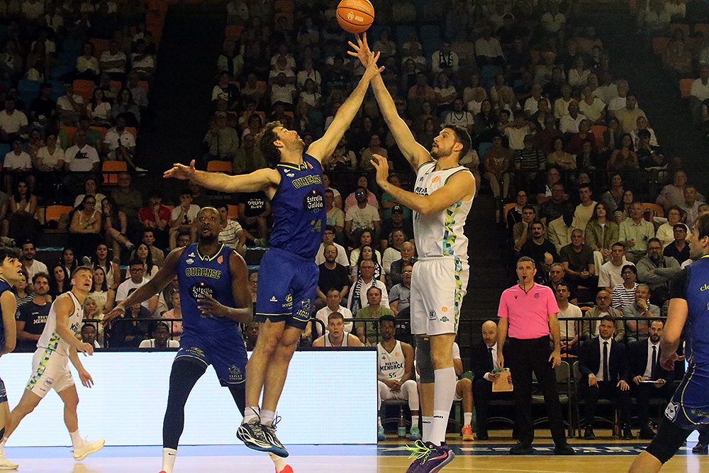 El inicio del periodo decisivo fue complicado para los menorquines. Un 2+1 de Fernández adelantaba al Ourense (52-54) en un momento delicado, marcado también por la tensión en la pista.